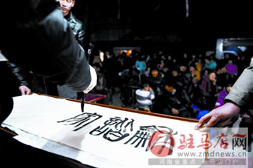 書法愛好者現場書寫“和諧家庭歡度佳節”。