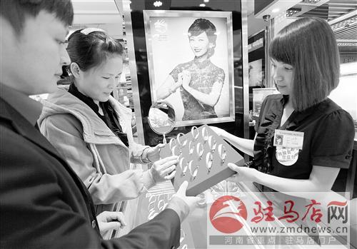 摘要: 10月28日,市區(qū)大商新瑪特商場(chǎng)的營(yíng)業(yè)員在為顧客挑選黃金飾品。由于幾天來國(guó)際金價(jià)上漲,國(guó)內(nèi)黃金飾品店千足金價(jià)格有所上漲,市民購(gòu)買熱情未減,金店黃金飾品銷量增長(zhǎng)較快。記者 吳 波 攝