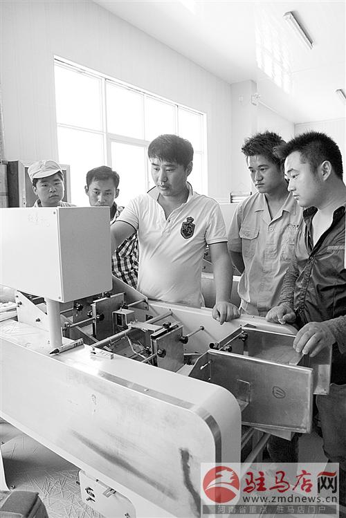 在生產車間一樓的一個機器旁,記者看到來自機器生產廠家的售后技術人員在對6名學員進行培訓,培訓內容包括機器操作流程與保養和根據面條的長短、粗細來調試機器與自動稱量機等,確保產品嚴格按照標準進行生產。
