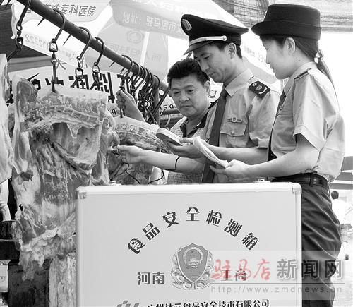 為確保夏季肉食品市場消費安全,讓消費者吃上放心肉,近日,西平縣工商局執法人員加大了肉食品市場的監管力度。 記者 張 勇 通訊員 王向前 攝影報道