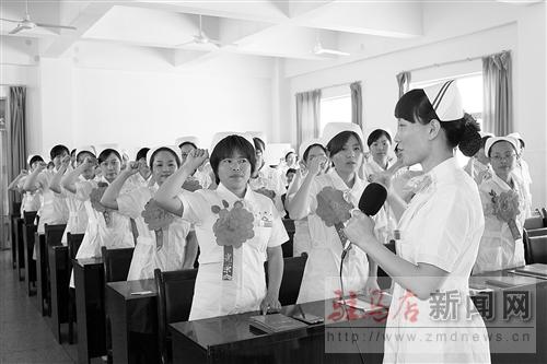 為慶祝5·12國(guó)際護(hù)士節(jié),日前,確山縣人民醫(yī)院召開(kāi)大會(huì),表彰了在優(yōu)質(zhì)護(hù)理服務(wù)活動(dòng)中表現(xiàn)突出的優(yōu)秀集體和先進(jìn)個(gè)人,并進(jìn)行集體宣誓,要讓南丁格爾精神代代相傳。通訊員 曹天順 攝