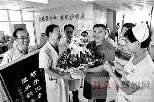 本報訊 8月6日上午8時 許,在市中心醫院心血管內二科住院病房內,不久前患心肌梗死,命垂一線的楊三魁笑聲朗朗。成功實施冠脈支架手術后,他恢復得很好,已經可以出院了!在臨走前,他向科室主任龐學民等送錦旗表達心意。龐主任送給楊三魁鮮花,祝賀他痊愈。