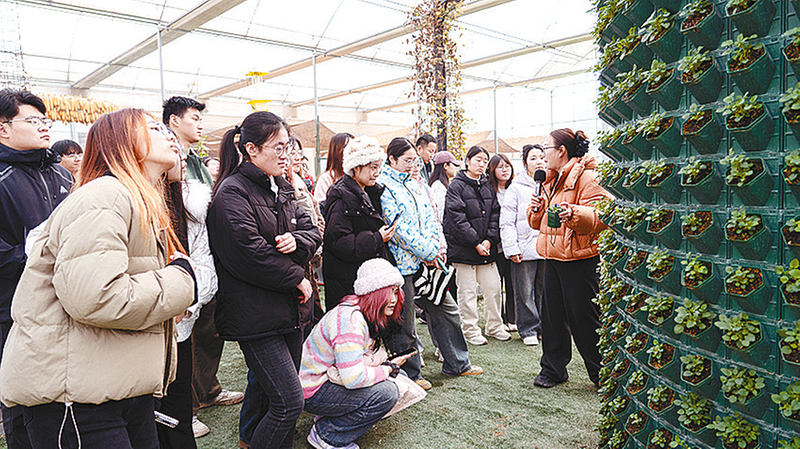 摘要:近日,黃淮學院生物與食品工程學院組織學生到駐馬店天中生態農業園區,開展專業認知實踐活動。50多名黃淮學子走出課堂,開啟一場“科技+農業”的實踐探索之旅,讓專業理論在田間地頭落地生根。本報記者 張遙駝 通訊員 杜 坤 攝影報道